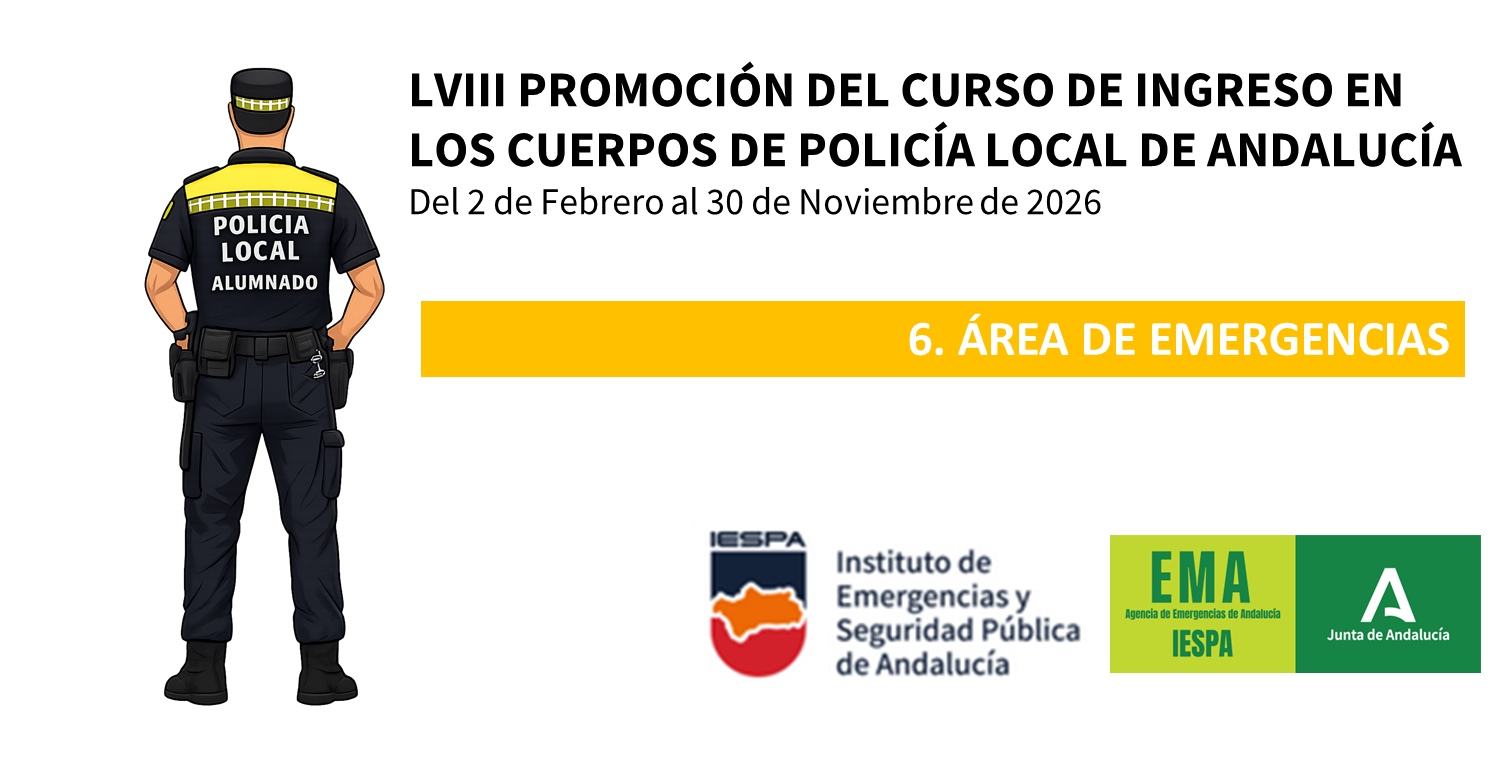 Instituto de Emergencias y Seguridad Pública de Andalucía (IESPA) / Ediciones / 2026 / LVIII CURSO DE INGRESO DE POLICÍA LOCAL / 6. ÁREA DE EMERGENCIAS Y PROTECCIÓN CIVIL